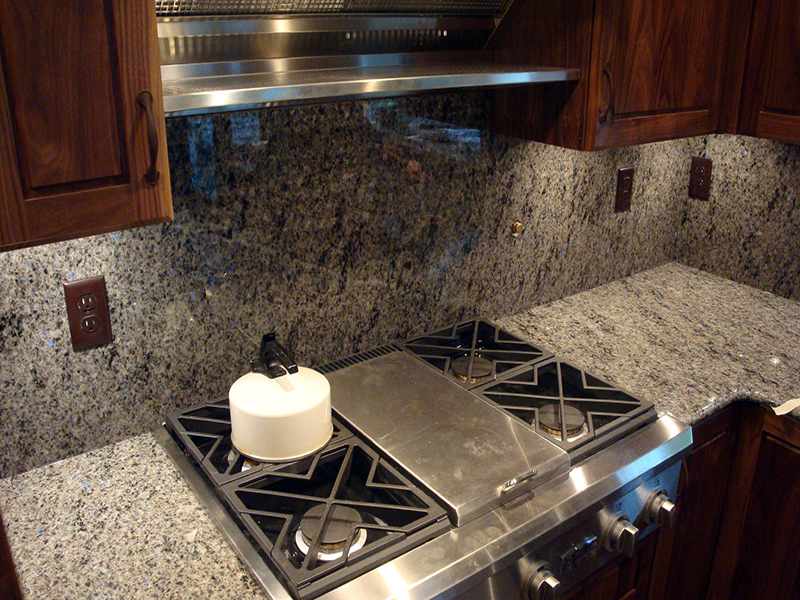 Blue Eyes Granite is an exclusive grey material with brilliant blue reflective clusters and some black veining. This stone is desirable for top designers