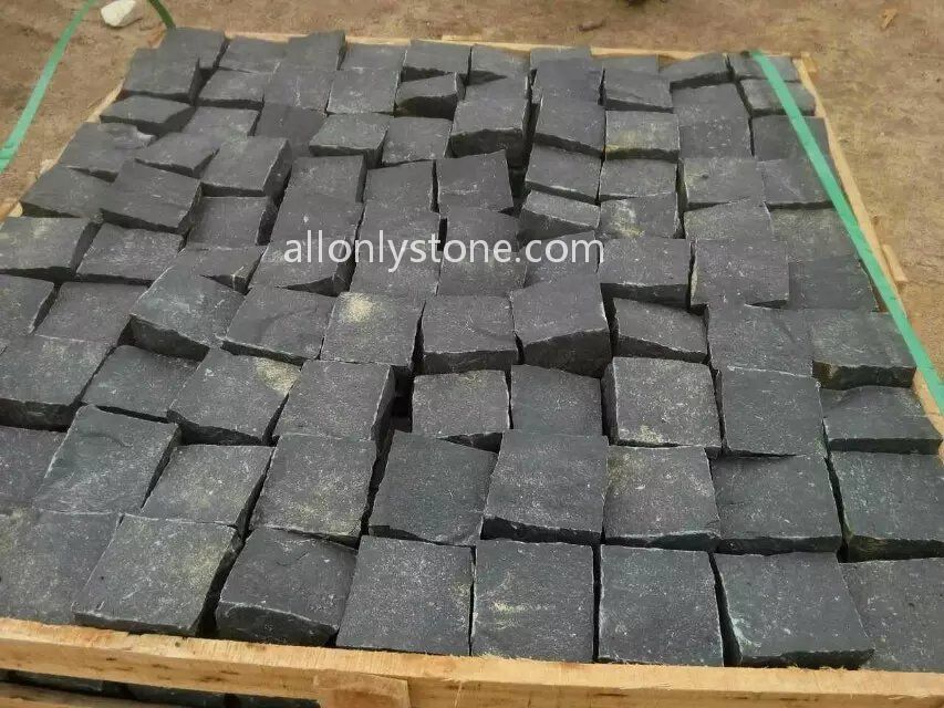 Black granite cobblestone is popular used in square pavingpassenger and car way paving